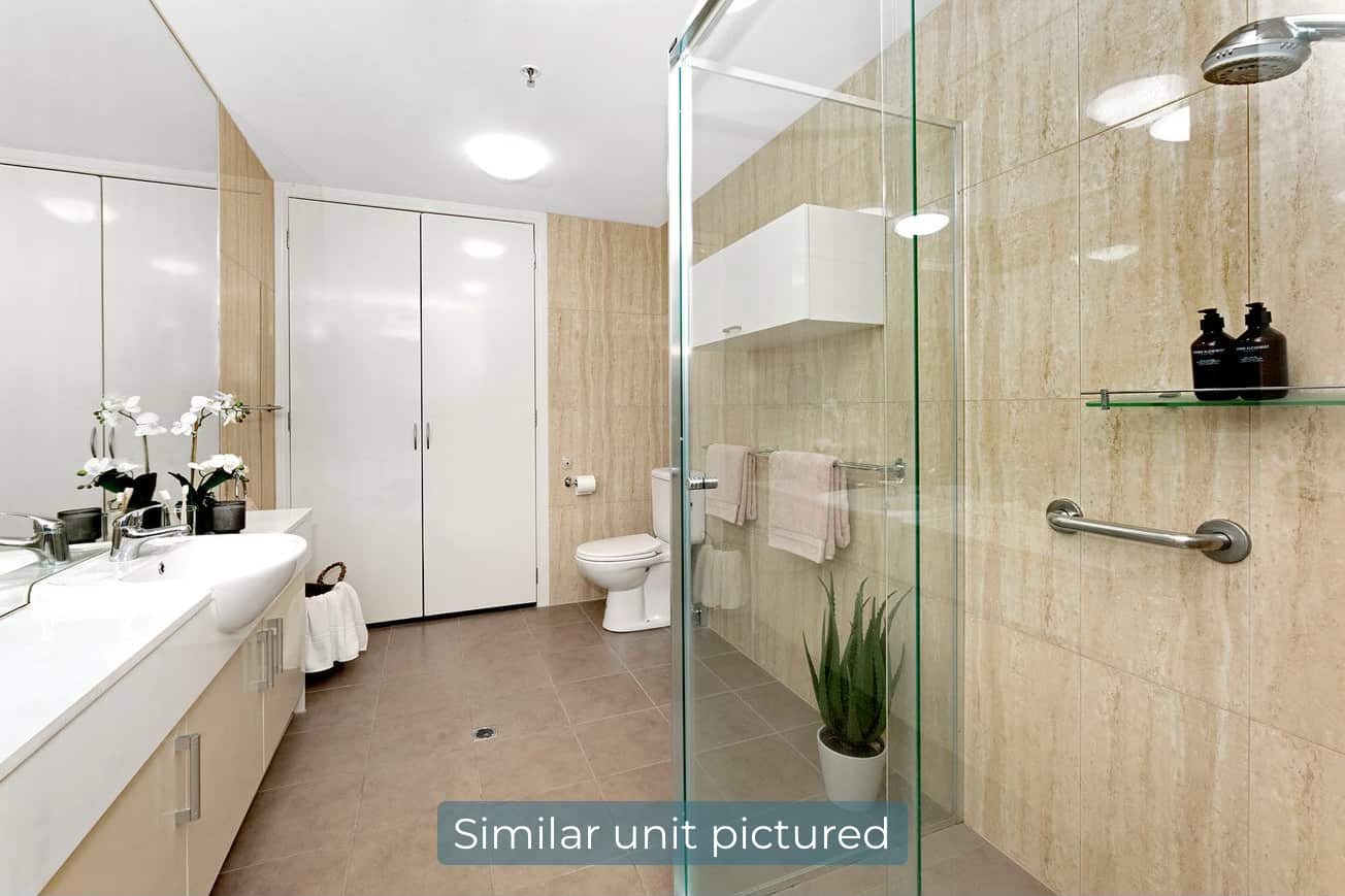 It includes an ensuite bathroom, as well as a separate bathroom and laundry. Two secure parking spaces, and storage buddy make this the height of luxury and convenience.